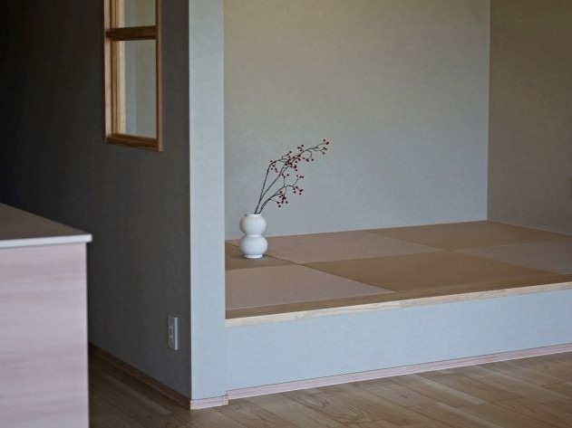 ヌックスペースには、グレーの落ち着きと桜色の温かみを兼ね備えた灰桜色の畳を使用。繊細な糸の目と和紙か […] -