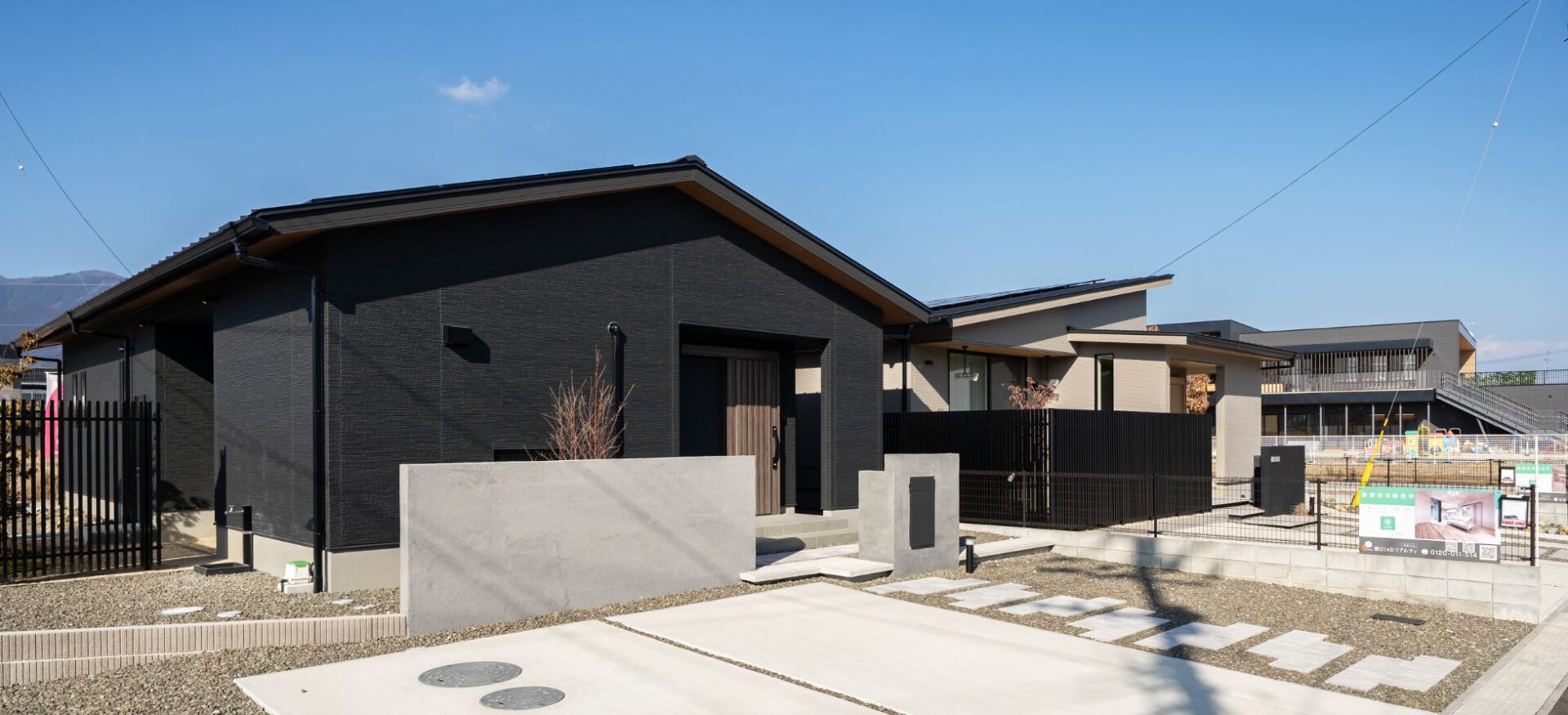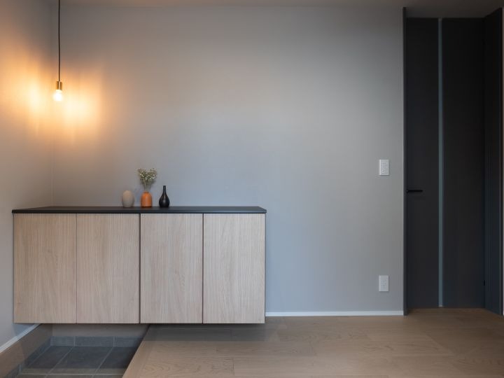 光沢の美しいフローリングにマットな質感の黒が映える、ジャパンディスタイルの平屋。メインクロスにはグレ […] -