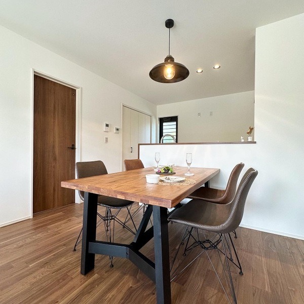 外壁やドア、天井などに木目調の物を多く使いました。