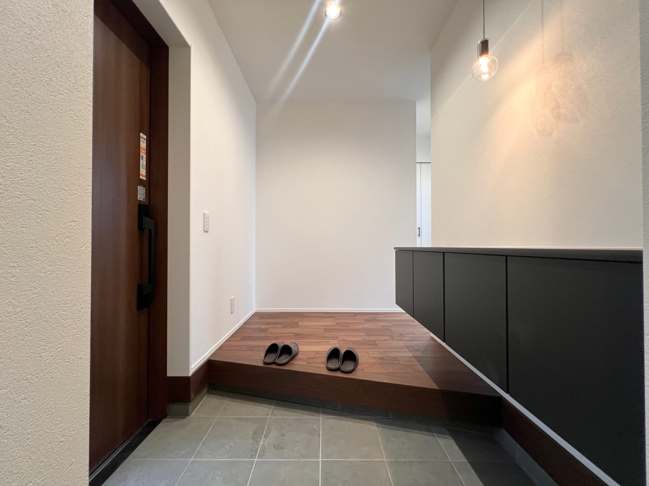 【玄関ドア:LIXIL・Familock電池式】スマートフォンやリモコン、カードキー、タグキーを使用して玄関ドアの施解錠を行うシステム。スマホをポケットに入れておけば、ドアのボタンをタッチするだけで施解錠ができ、専用アプリから施解錠履歴の確認も可能です。