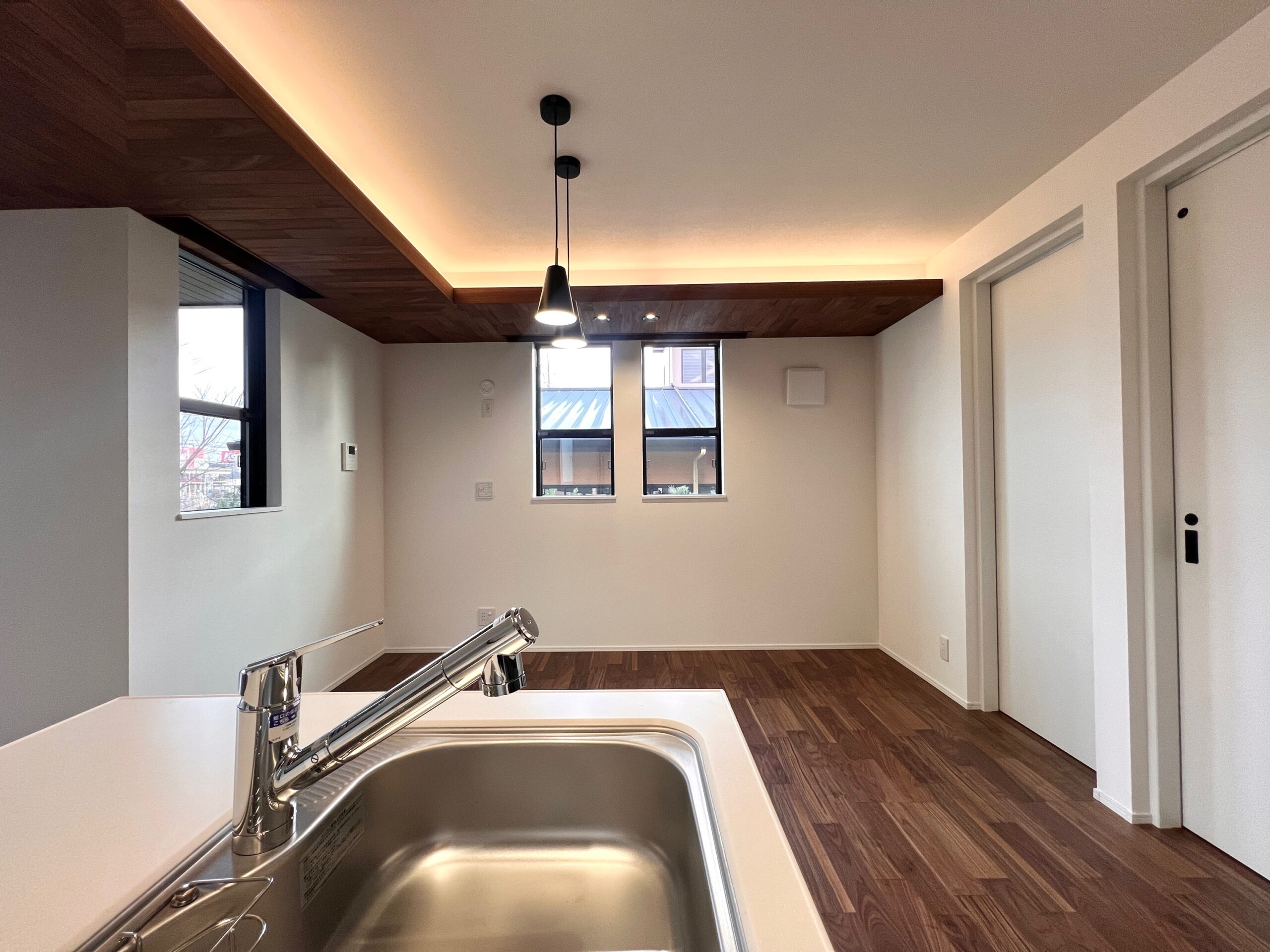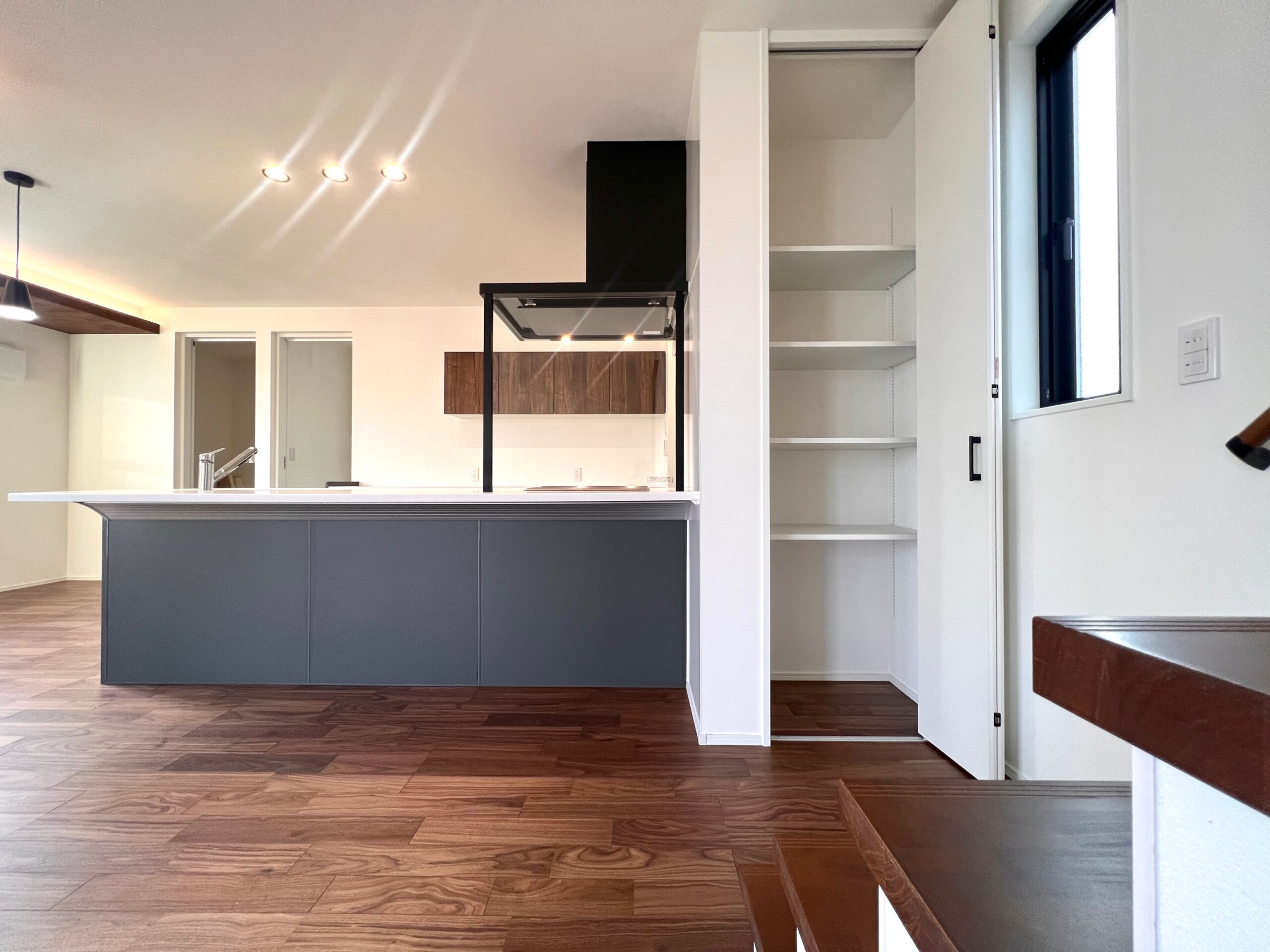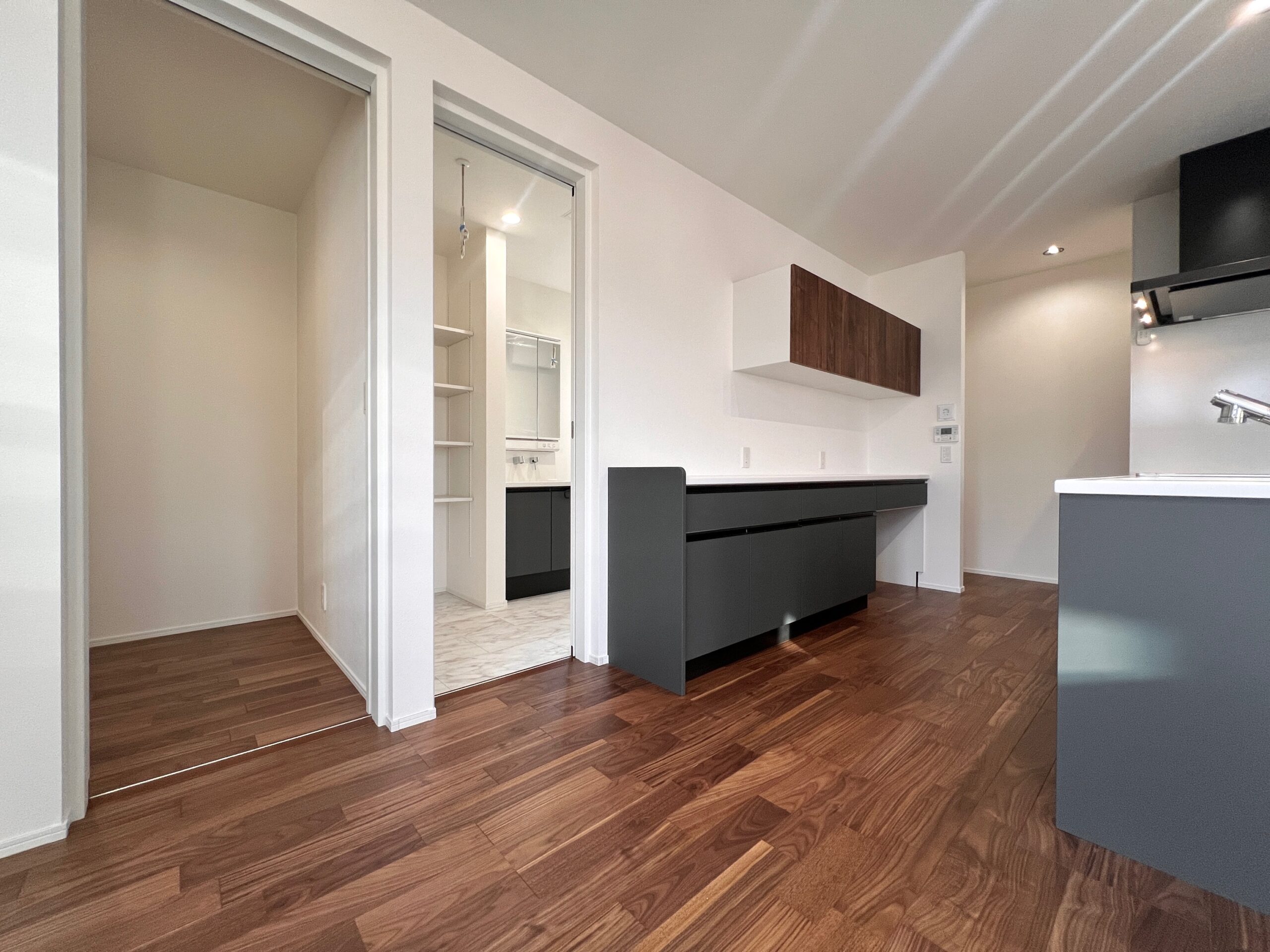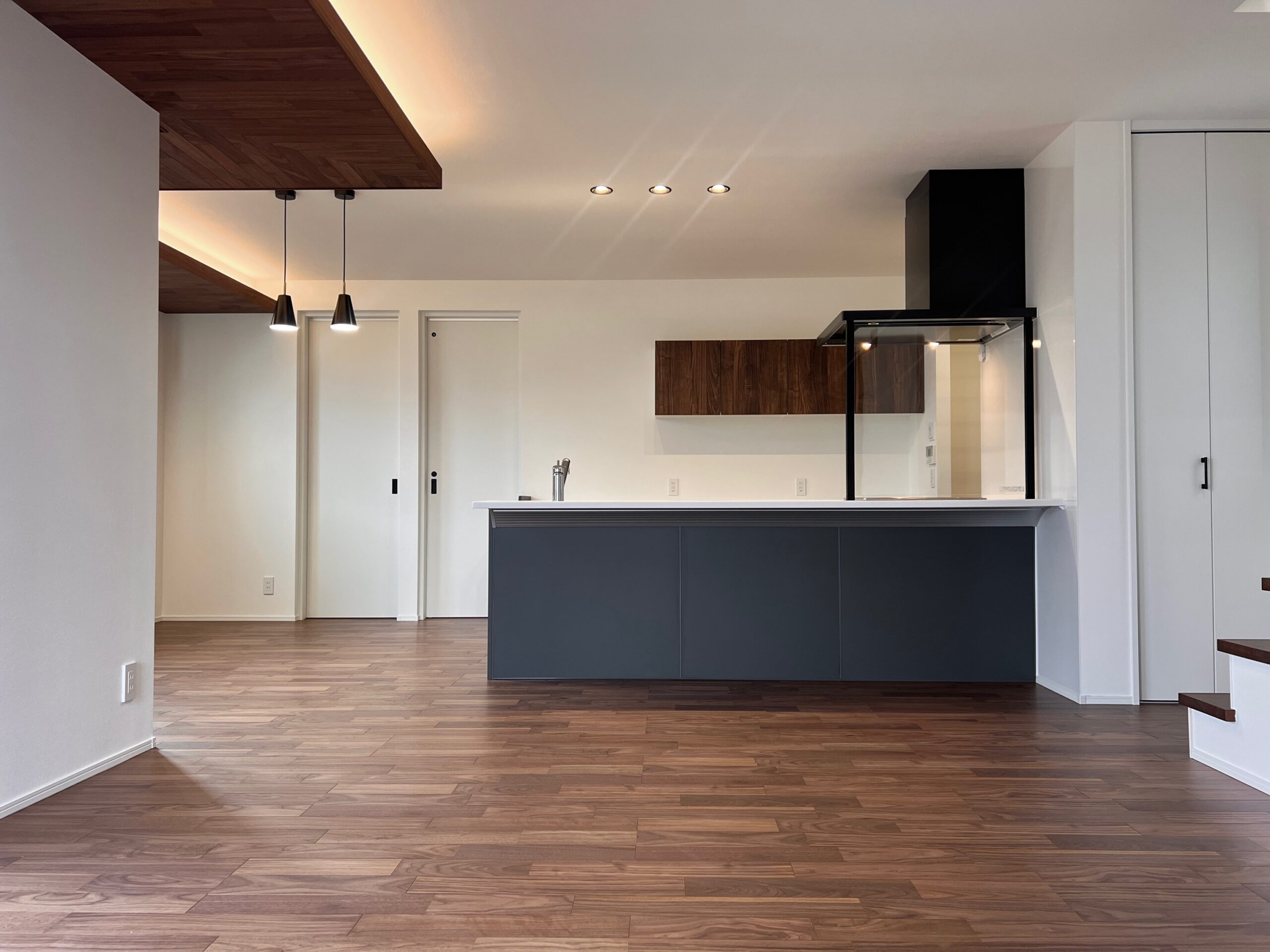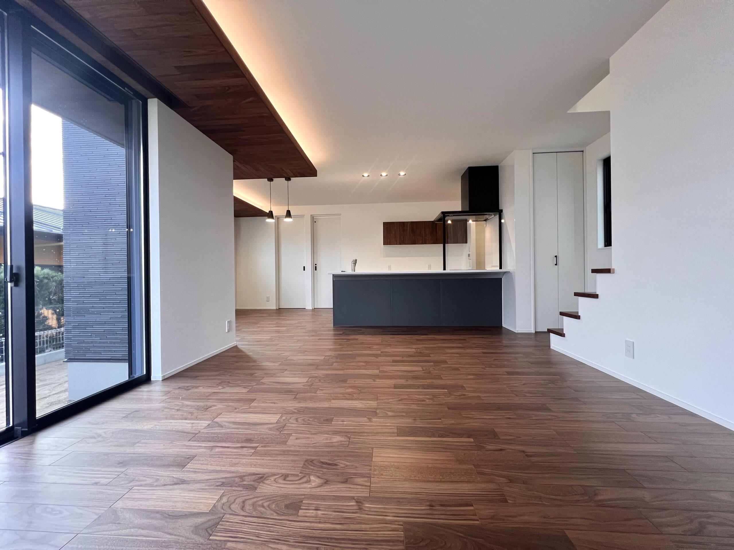 家族が集まる広いリビングは、食事だけでなく遊び、仕事など、様々な用途に対応できる空間です