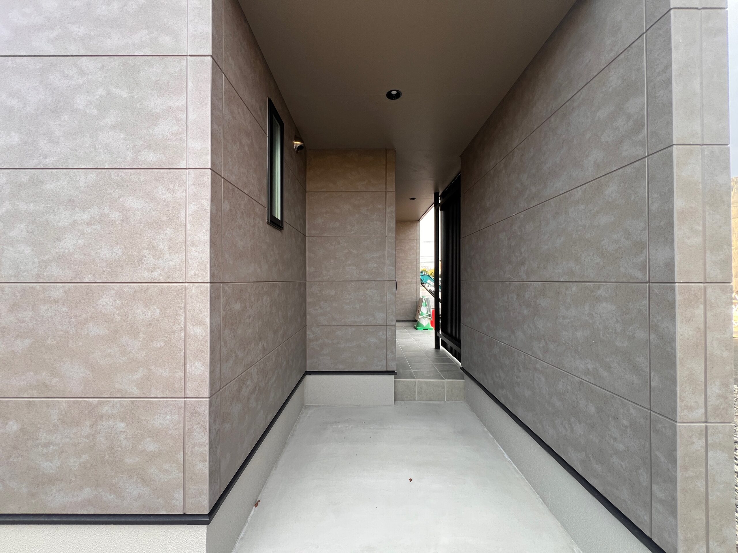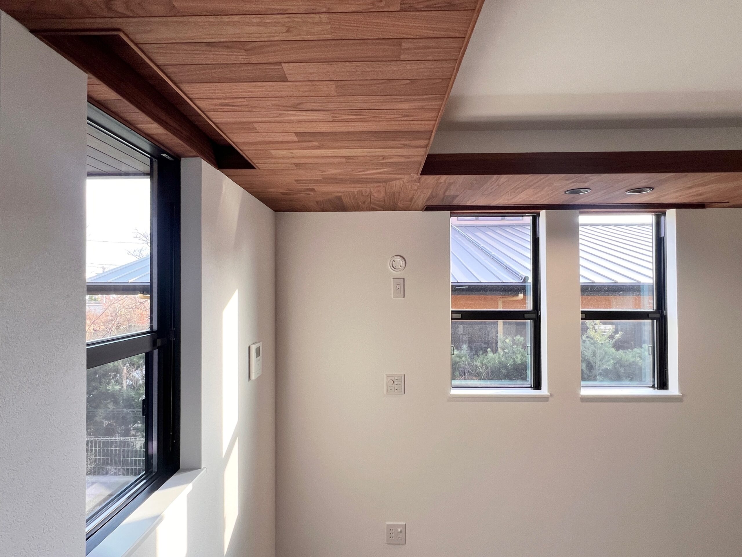 【耐力面材:タイガーEXプログレ】耐力面材とは、地震や台風による水平荷重(横からの力)に「面」で抵抗する建築材料。弊社物件に使用している面材は①石膏でできているから木質系面材と比べ火に強く、燃えにくい②湿気を外部に放出するため土台や柱、壁などを腐食させる原因となる結露の発生を抑制するという特徴をもち、耐震性だけでなく、耐火性・通気性に優れています。加えて耐震等級3相当の構造設計を採用しています。