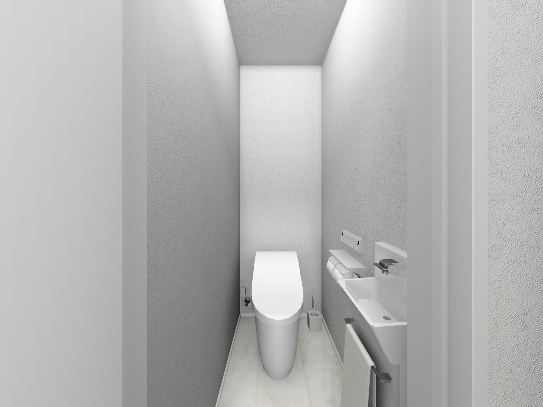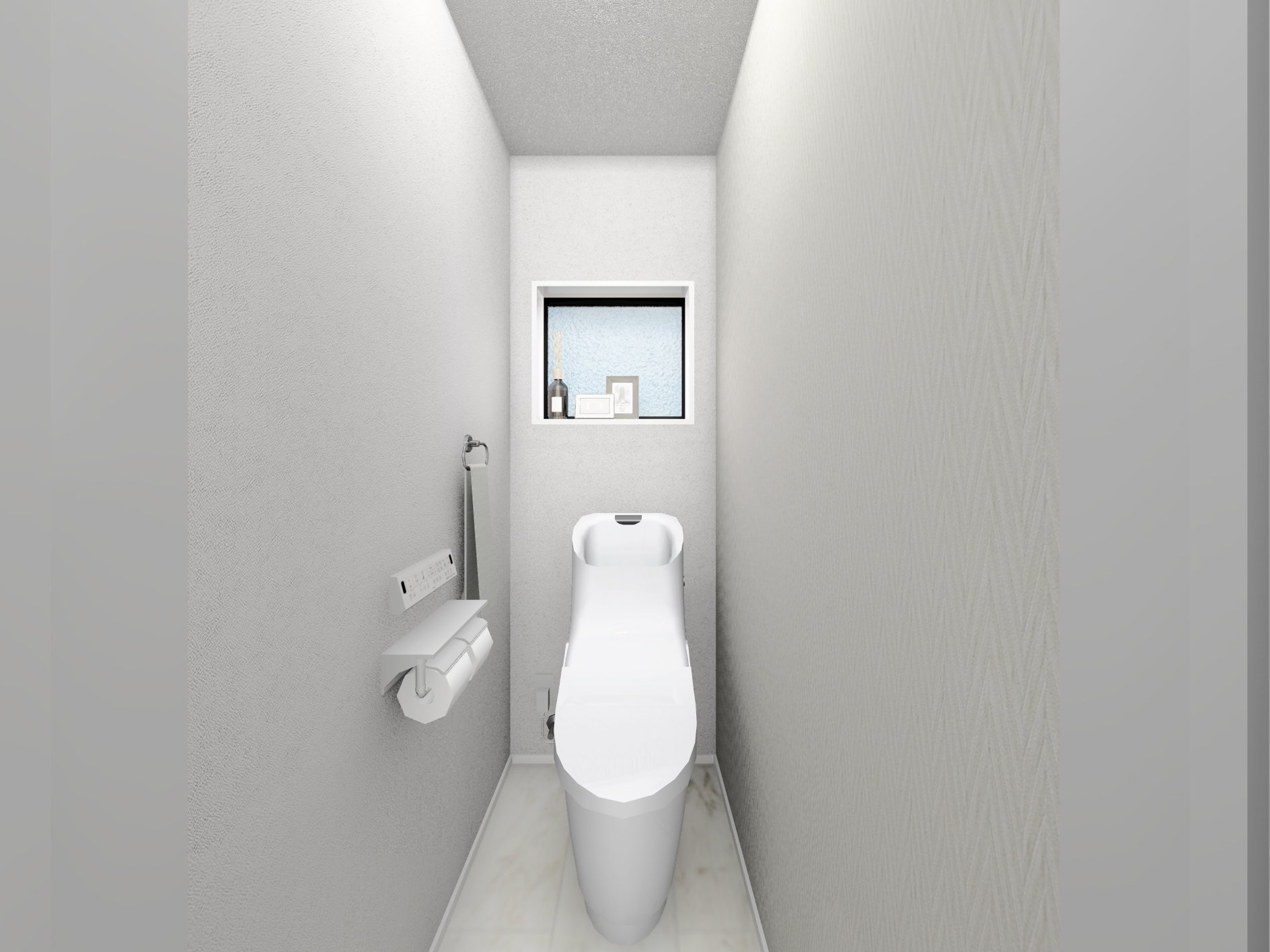 【2階トイレ:LIXIL INAX】1Fと同等の機能性・清掃性を備えた手洗い一体型トイレです。流線的なデザインで無駄のないコンパクトなフォルムが特徴です。