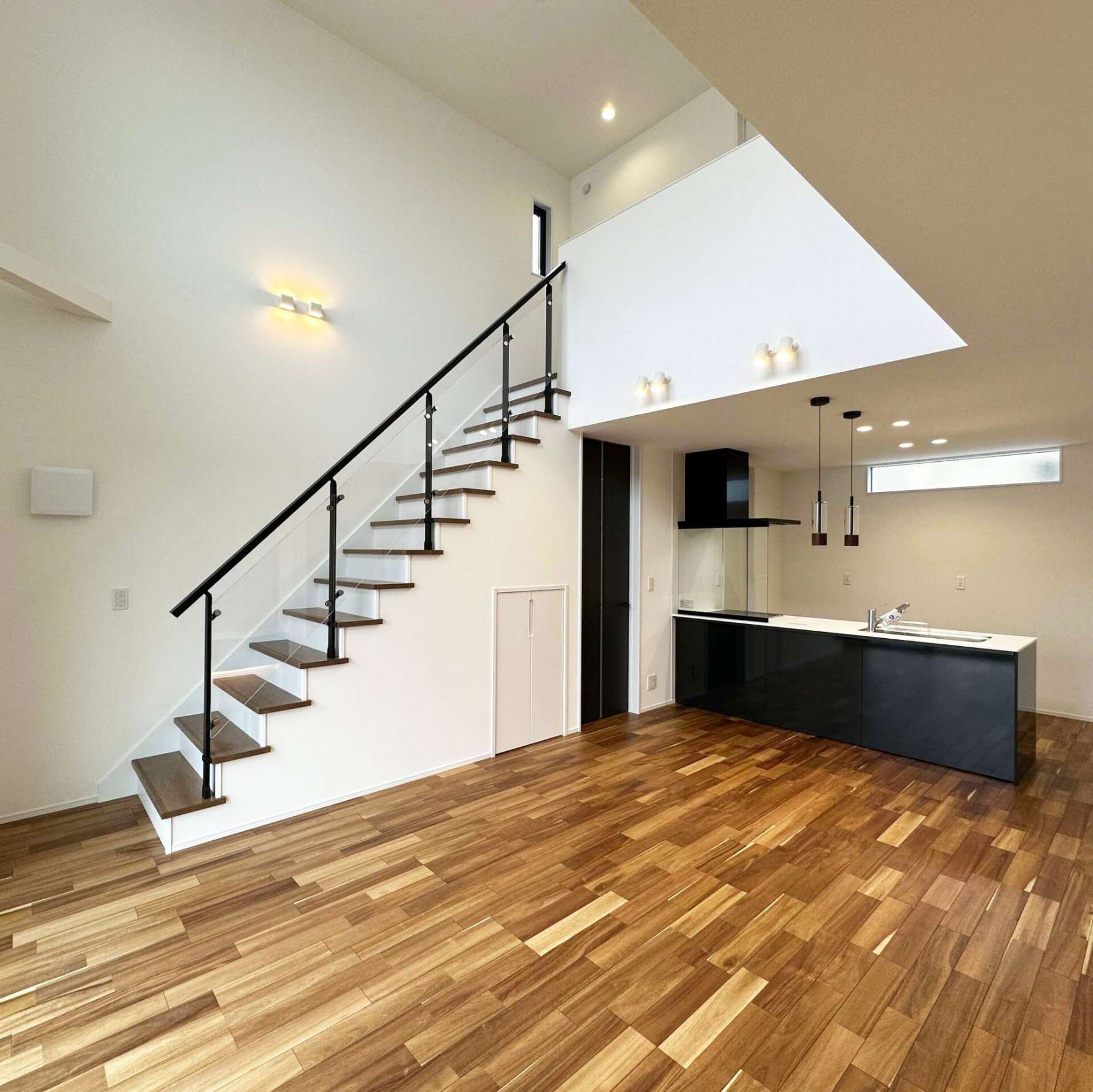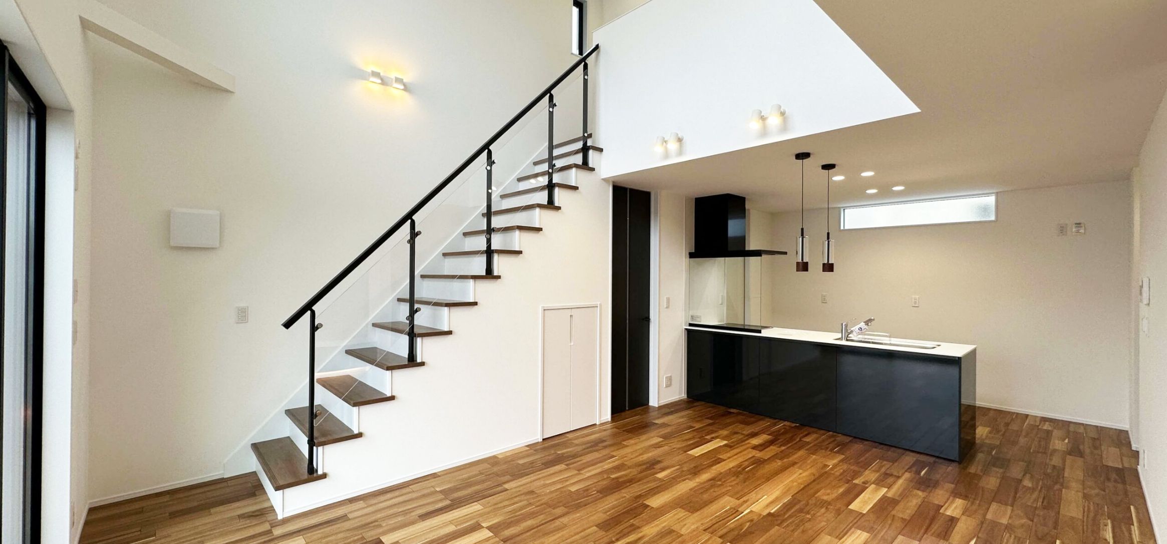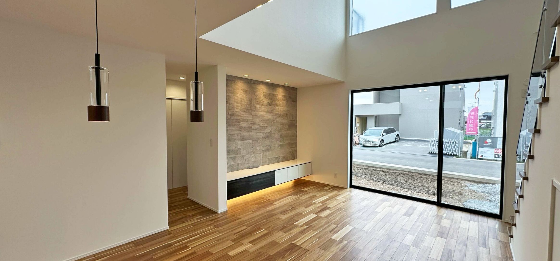 吹き抜けが広がるLDKが、空間にゆとりと開放感をもたらします。