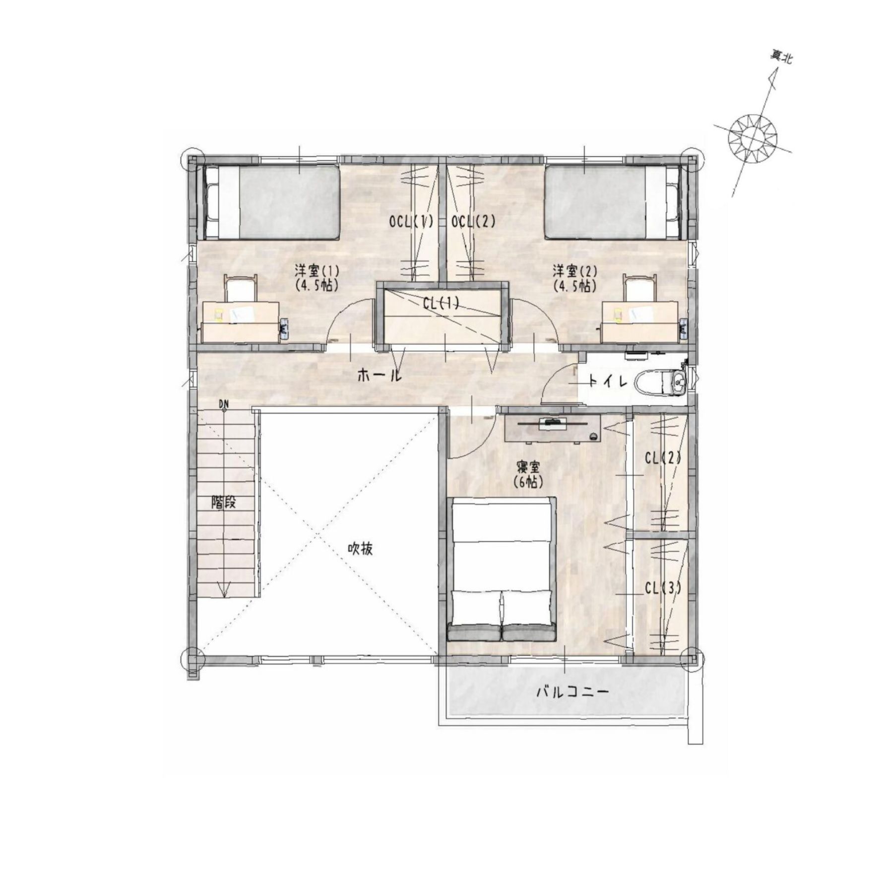 2階には3つの居室を配置し、