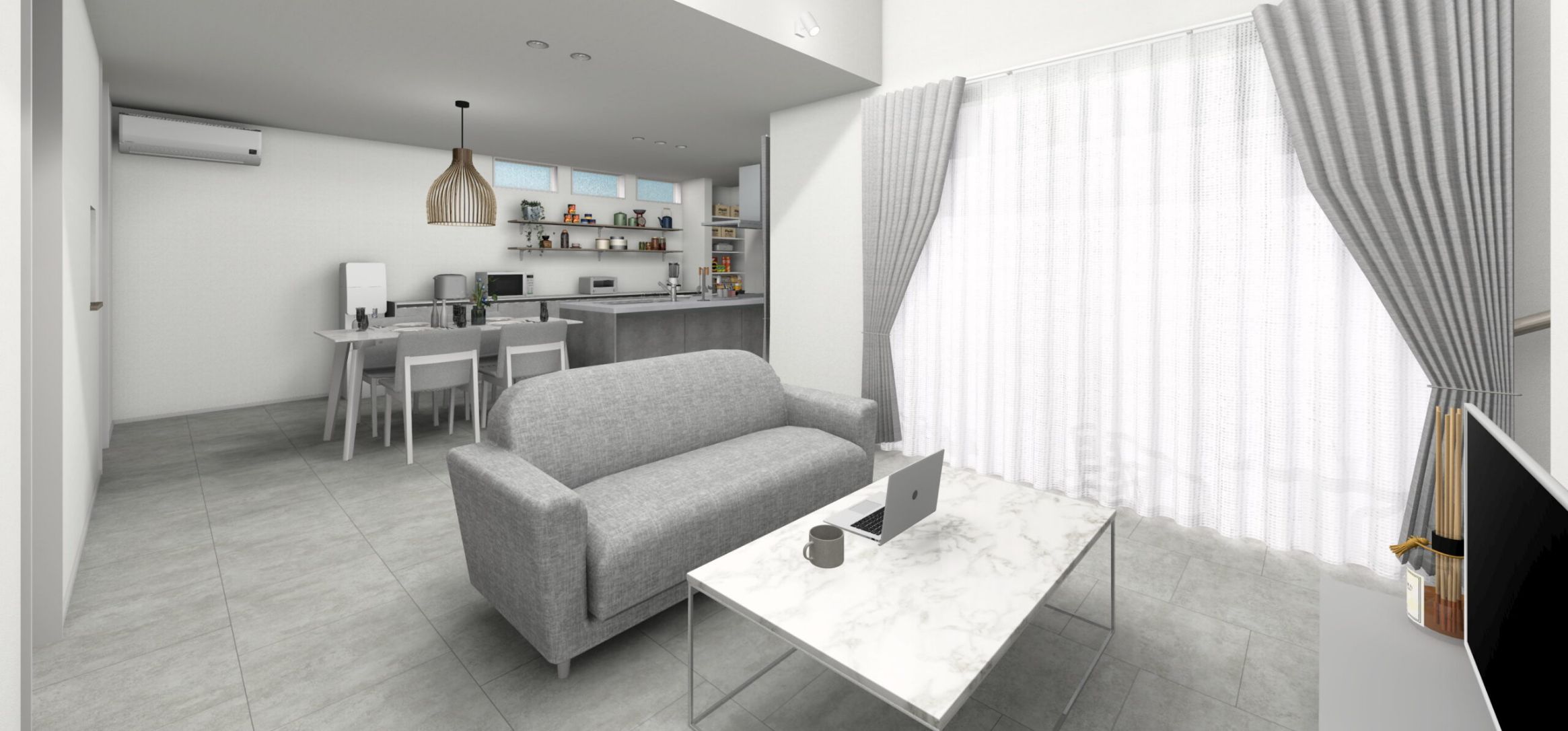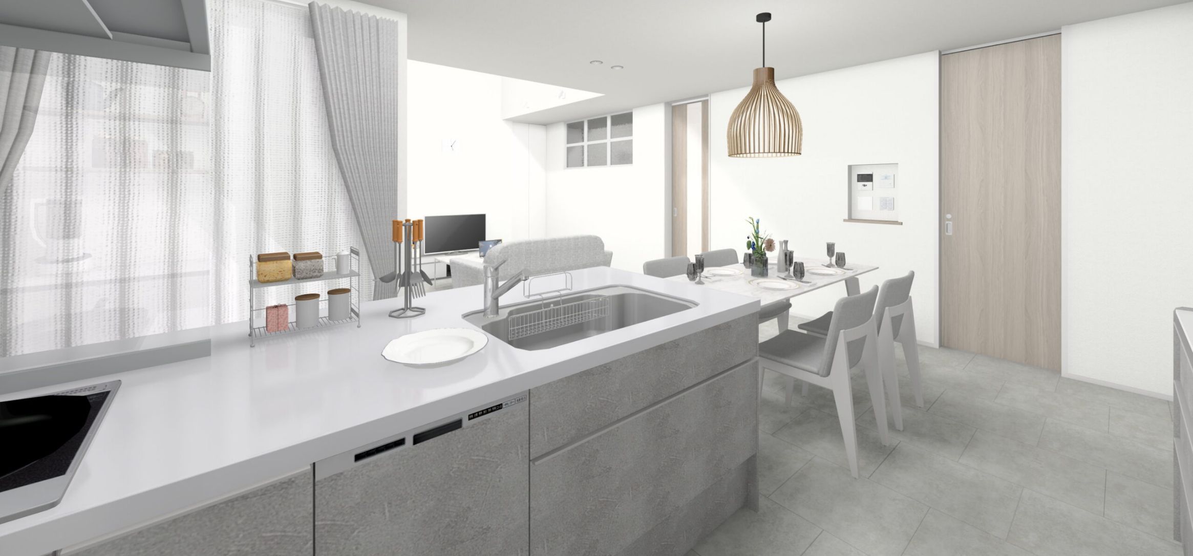 自然光が差し込むLDKとともに、