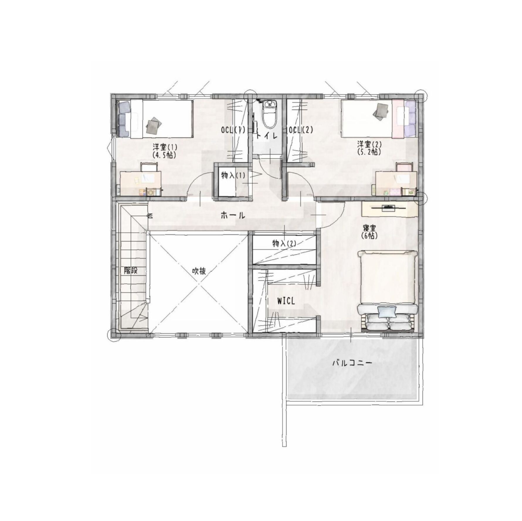 2階には家族それぞれの個室と