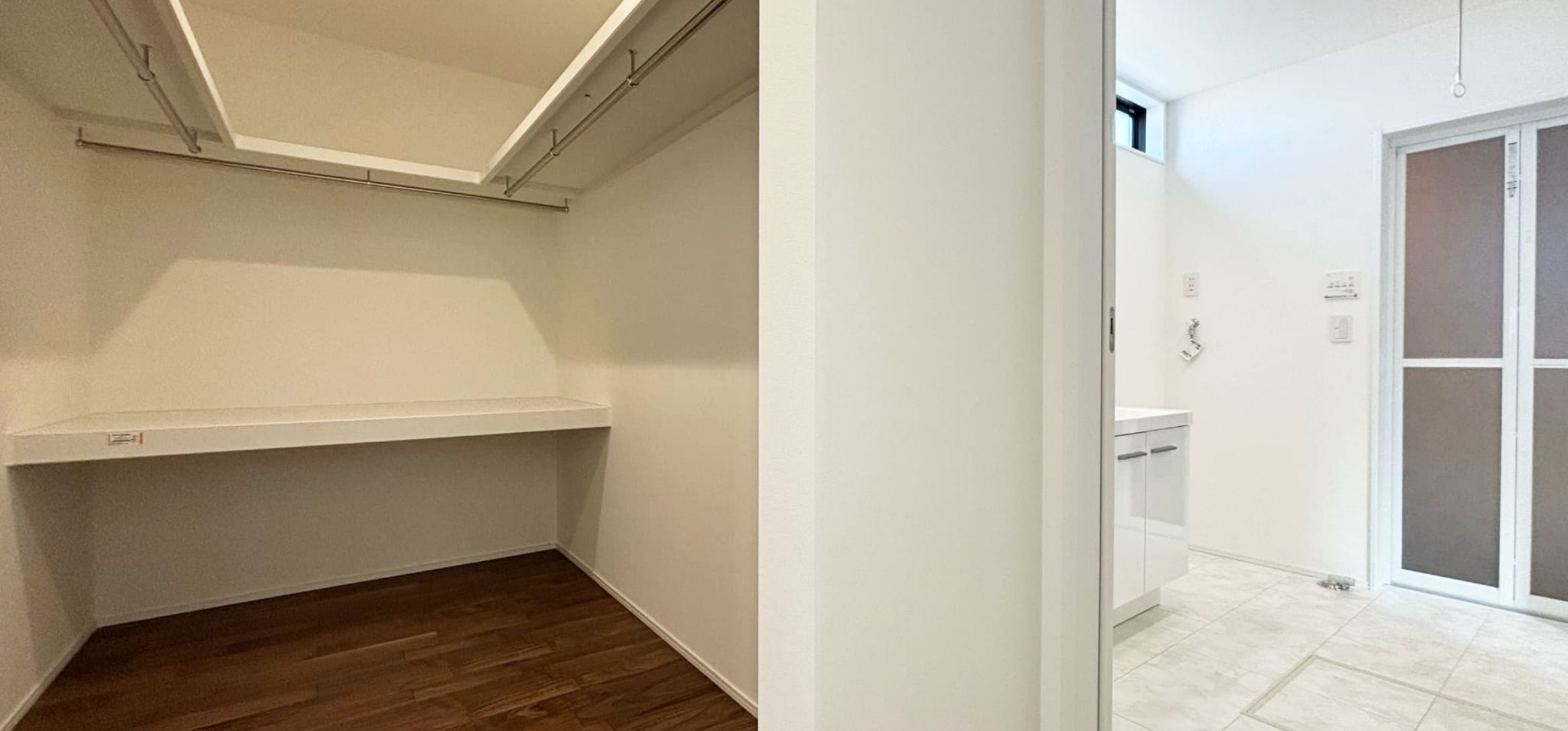 ウォークインクローゼットと洗面脱衣室が隣接。