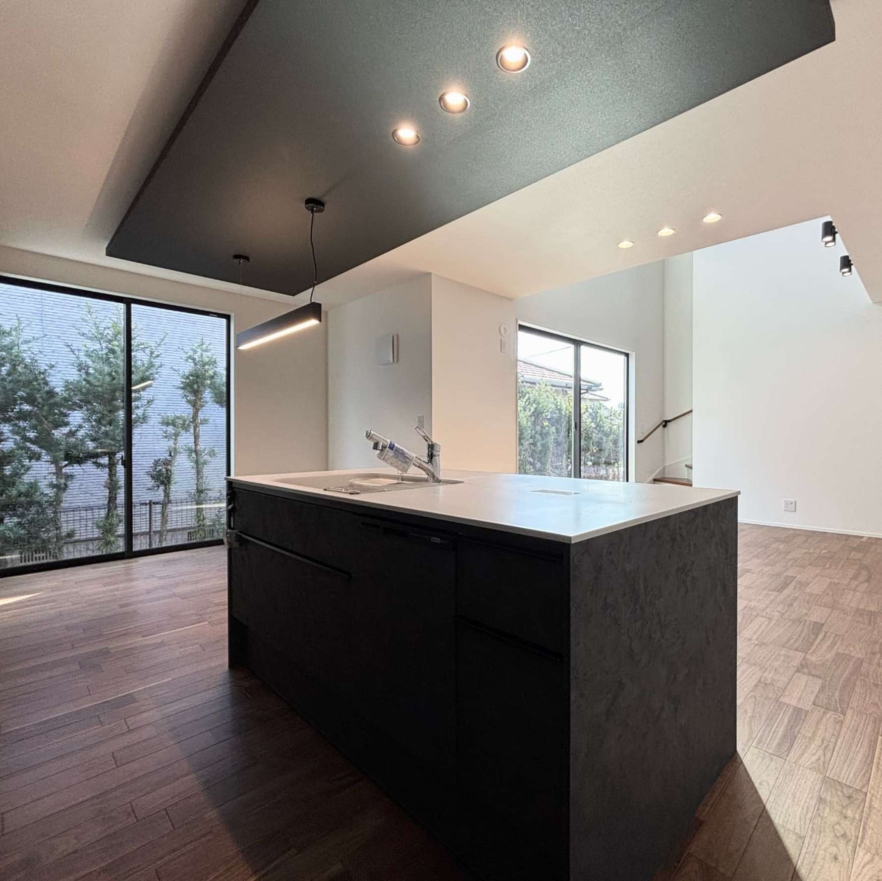 キッチンから吹き抜けへ広がる空間