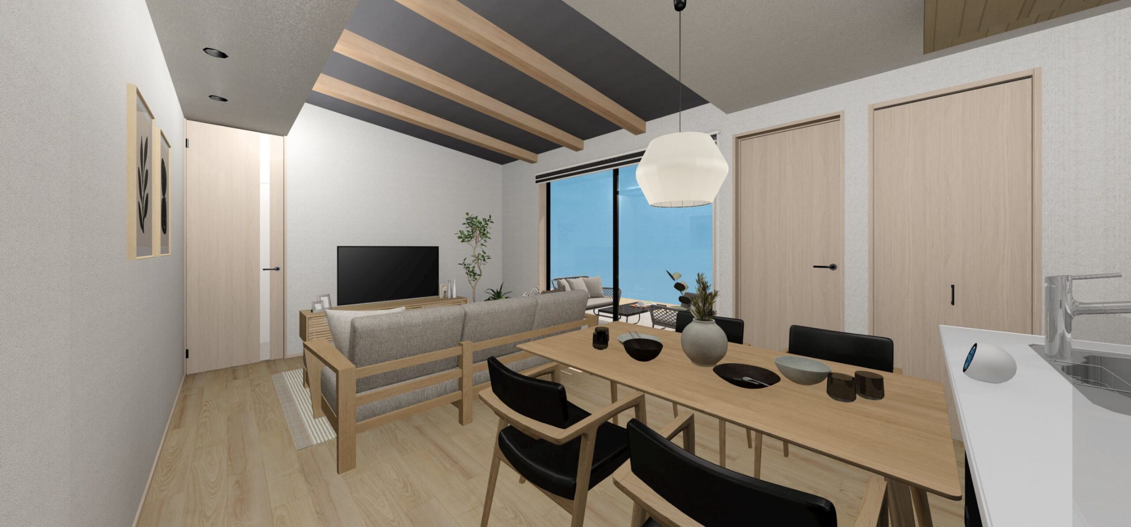 勾配天井が広がるLDKと