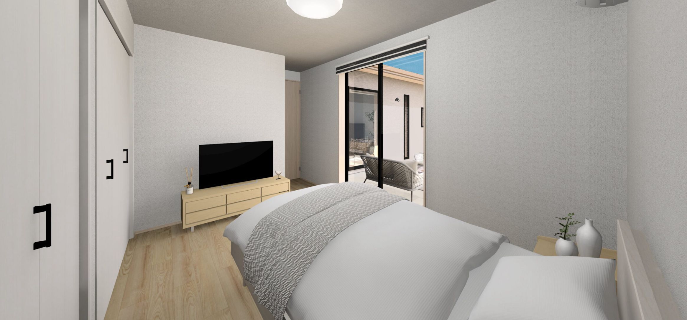 さらにLDKと主寝室からつながるタイルデッキが、