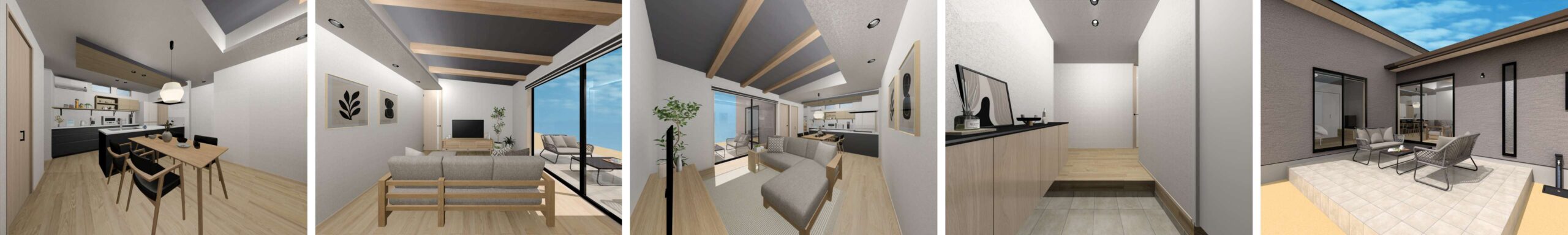 勾配天井のLDKと庭を楽しむ平屋