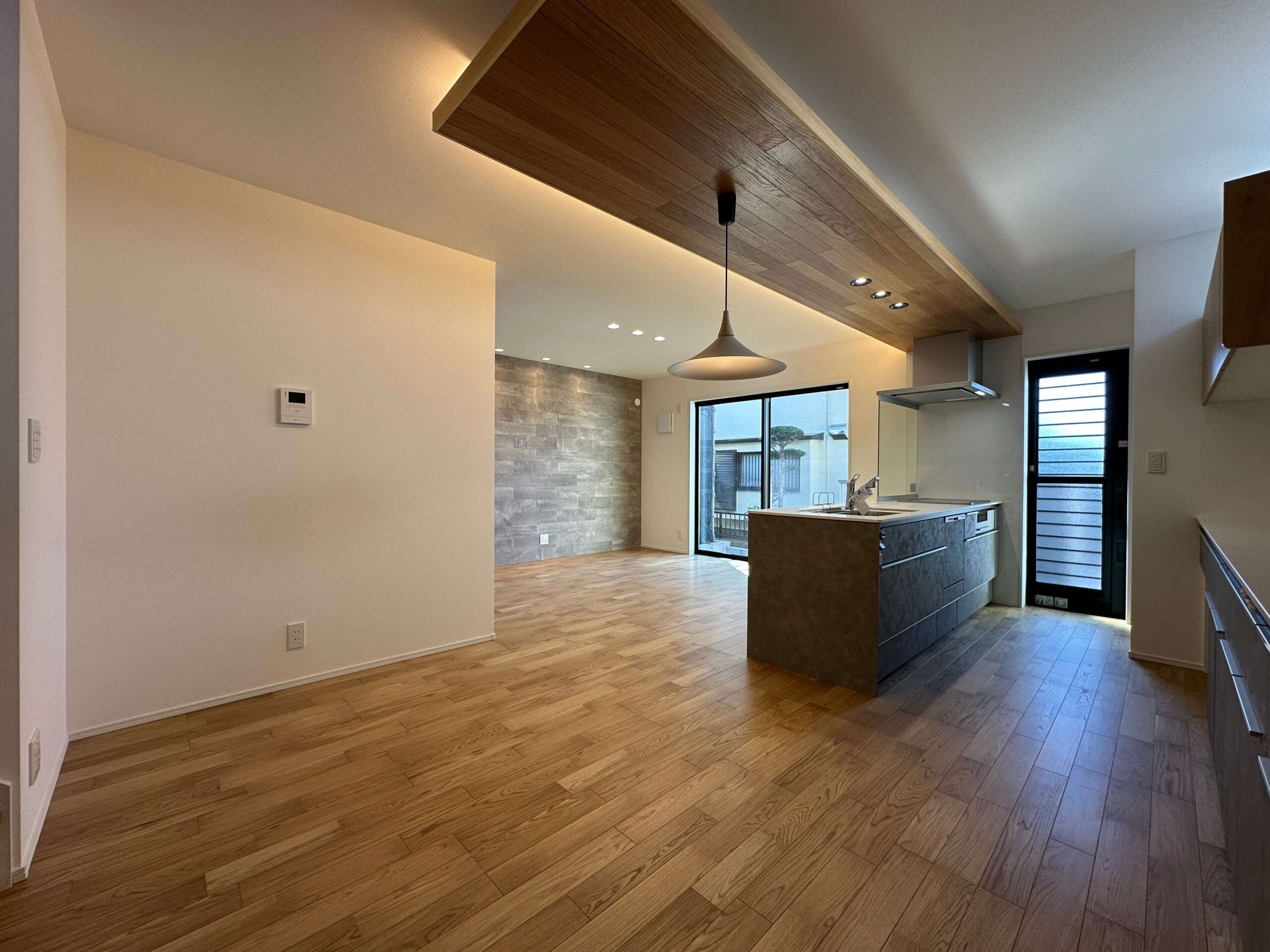 家族が集まる広いリビングは、食事だけでなく遊び、仕事など、様々な用途に対応できる空間です 0円ではじめるおトクな太陽光発電システム「シェアでんき」を導入した新築住宅です。...